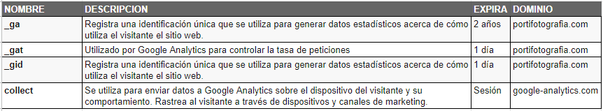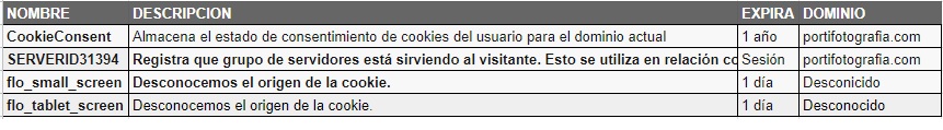 • Para cualquier duda o consulta acerca de esta política de cookies no dudes en comunicarte conmigo a través del correo electrónico hola@portifotografia.com